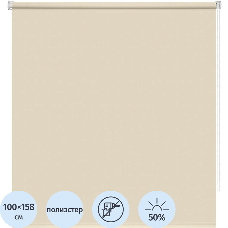 Комплектация товара. Рулонная штора в сборе: металлический вал (D1,7 см), ткань, вшитый пластиковый утяжелитель. Механизм в сборе (D1,7 см), пластиковая цепочка управления, крепление на откидную створку окна без сверления, инструкция по установке.