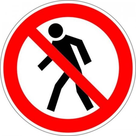 Знак безопасности «Проход запрещен». Код знака: P03. Место размещения (установки) и рекомендации по применению: у входа в опасные зоны, помещения, участки и др. Используемые материалы: самоклеящаяся пленка ПВХ. Формат 200x200мм. Знак круглой формы изготовлен на белой квадратной основе.