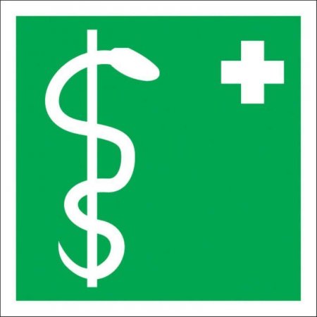 Знак безопасности «Медицинский кабинет». Код знака: ЕС05 . Знак изготовлен из самоклеящейся пленки. Используется для обозначения медицинского кабинета. Формат: 200x200 мм.