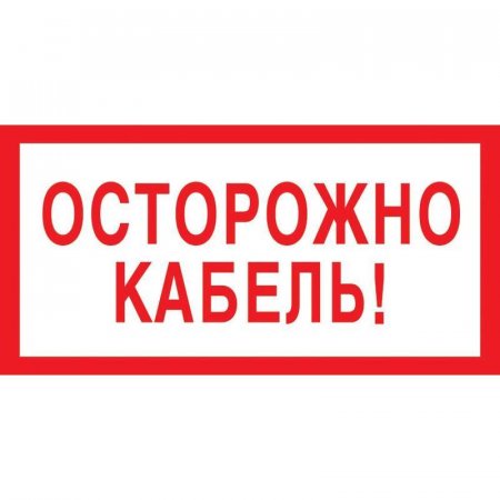 Вспомогательный знак (табличка) «Осторожно кабель». Код знака: V44. Знак изготовлен из самоклеящейся пленки. Используется для информирования о наличии кабеля и призывает быть осторожным при выполнении работ. Формат: 150x300 мм.