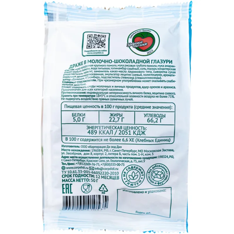 Драже без сахара и глютена в молочно-шоколадной глазури — это идеальный выбор для тех, кто следит за своим здоровьем и питанием. Эти хрустящие шарики изготовлены без добавления сахара и глютена, что делает их идеальными для людей с особыми пищевыми потребностями. Этот полностью готовый и хрустящий продукт можно употреблять в дороге, в школе, на работе с любыми напитками как перекус.