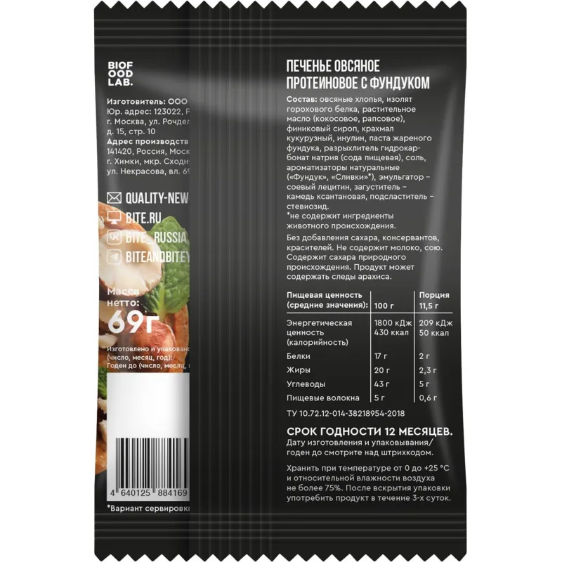 Печенье Bite овсяное протеиновое с фундуком 69 г