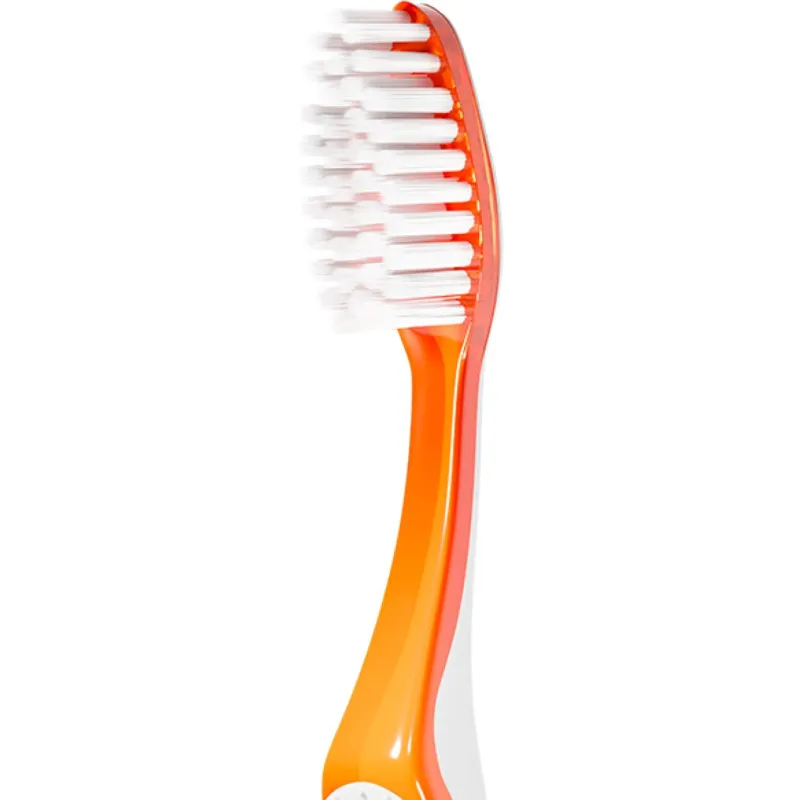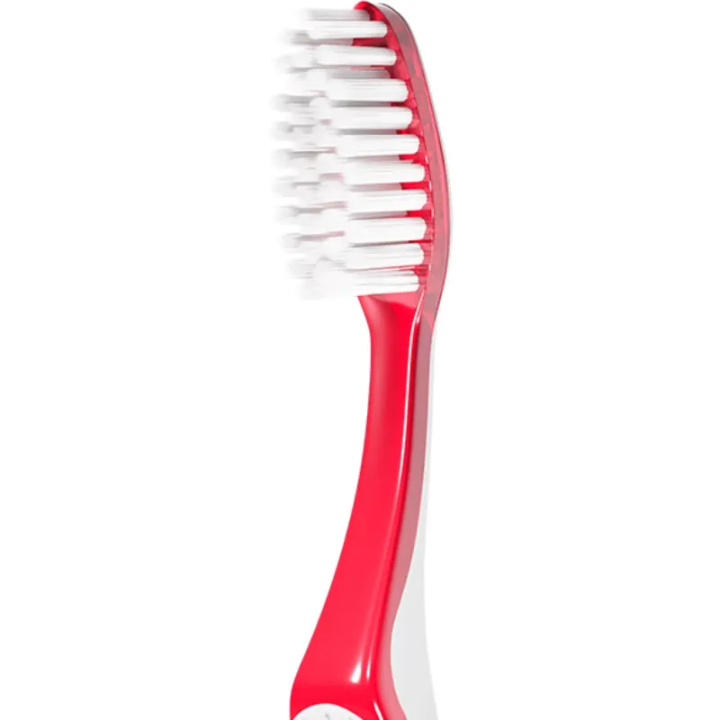 - благодаря удлинённым филированным щетинкам мягко массирует десны и проникает в межзубные пространства, недоступные при чистке традиционными щётками;