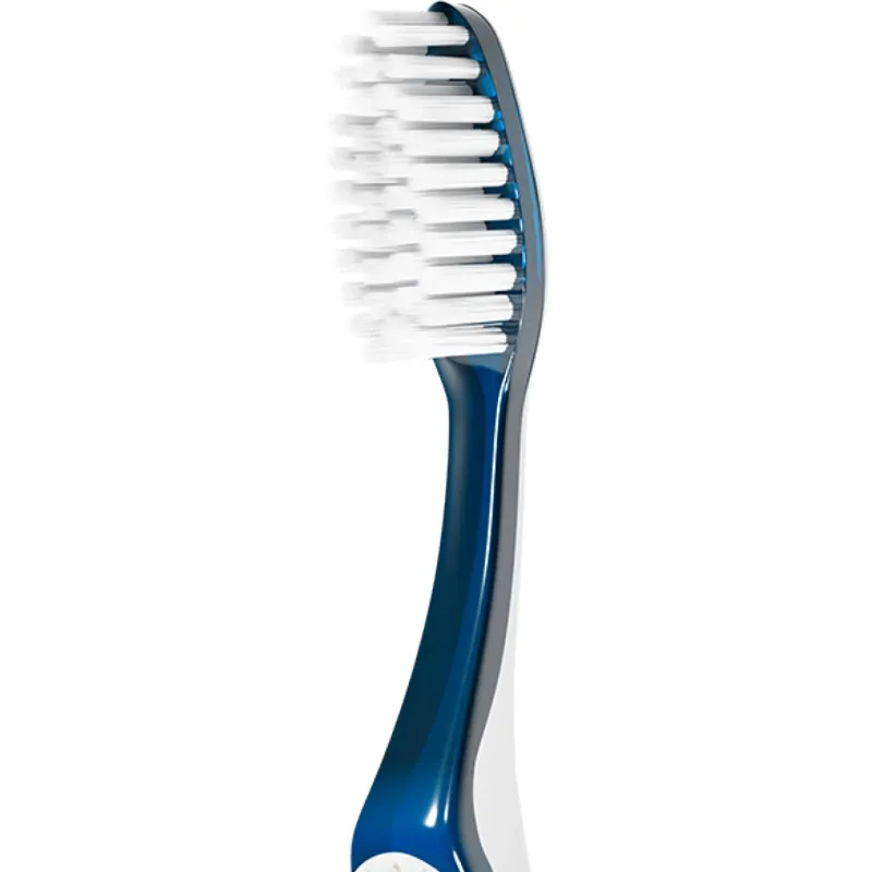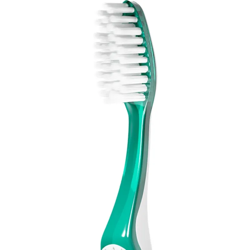 Зубная щётка с комбинацией двух видов щетинок деликатно массирует десны и очищает зубную эмаль.
